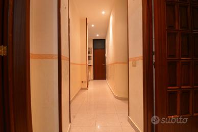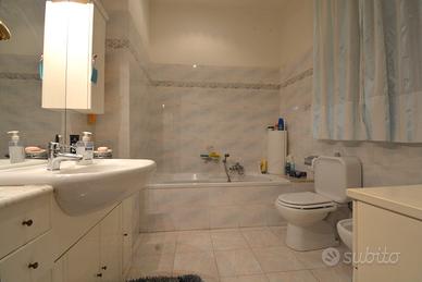 Entrando in casa, si accede ad un ingresso ampio e funzionale, che conduce alla zona giorno. Il salone è composto da due ambienti comunicanti che si affacciano su un giardino di proprietà esclusiva. Dal salone, tramite un comodo disimpegno, si accede alla cucina e all'adiacente sala da pranzo, ideali per chi ama vivere la casa nei suoi spazi quotidiani. Da qui si accede a un balcone che affaccia sul cortile interno, dove è stato ricavato anche un pratico ripostiglio esterno adibito a zona lavanderia. La doppia esposizione dell'immobile, su entrambi i lati dello stabile, garantisce una ventilazione naturale costante durante tutto il giorno. La zona notte, ben separata dagli ambienti di rappresentanza, è composta da due camere da letto comode, tutte di dimensioni confortevoli, adatte a soddisfare le esigenze di una famiglia. Sono inoltre presenti due bagni. L'appartamento, seppur in buone condizioni generali richiede alcuni interventi di ammodernamento, che consentirebbero di valorizzarne al massimo il potenziale e trasformarlo in una residenza moderna. Attualmente è dotato di infissi in vetrocamera e impianto di riscaldamento autonomo. Completa la proprietà una cantina al piano seminterrato. Contatta la nostra Agenzia Immobiliare allo oppure invia direttamente un messaggio a Carmen su WhatsApp al