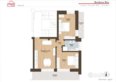 A pochi minuti dal centro, in palazzina di nuova realizzazione di sole sei unità abitative, proponiamo in vendita grazioso trilocale con balcone e terrazzo. L'immobile, posto a primo piano, si compone di una luminosa zona giorno con terrazzo esposto a sud, un bagno finestrato, il disbrigo introduce la zona notte con una camera matrimoniale che affaccia sul terrazzo e una camera singola con balcone. Grazie all'esposizione su tre lati ed alle ampie vetrate l'unità gode di una buona luminosità in tutte le ore del giorno. Disponibilità di posti auto privati. L'edificio è dotato di pannelli fotovoltaici, pompa di calore condominiale, riscaldamento e raffrescamento a pavimento e sistema di ventilazione meccanica controllata. Possibilità di personalizzare le finiture interne. Consegna delle unità abitative prevista per giugno 2026. L'acquirente potrà beneficiare delle detrazioni fiscali previste per l'acquisto. Classe energetica A+.