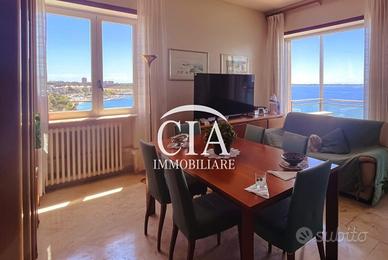 In una delle posizioni più belle di Taranto, CIA by GIANNONE IMMOBILI D'AUTORE S.r.l., propone alla sua clientela più esigente uno splendido appartamento caratterizzato da una stupenda vista mare frontale con esposizione a Sud. Ci accoglie all'interno un importante ed ampio ingresso che conduce in un salone doppio. L'impatto visivo è notevole grazie alle grandi finestre e al comodo balcone che rende possibile ammirare l'azzurro che si confonde tra mare e cielo e godere di uno dei più bei panorami sul porto di Taranto. Dal lato Est, troviamo due ampie camere da letto, bagno padronale e comodo ripostiglio, dal lato opposto altra camera e due bagni. La grande cucina provvista di bucataio si affaccia su un meravigliosa terrazza coperta, anch'essa vista mare, dove si potrà comodamente pranzare con lo sguardo fino a San Vito. L'appartamento per la sua metratura e doppio ingresso, uno per l'accesso alla zona giorno e l'altro alla zona pranzo, consente una diversa disposizione interna degli ambienti e possibile frazionamento. L'imponente stabile, con servizio di portineria, e' dotato di doppio ascensore e montacarichi. Al piano seminterrato possibilità di posti auto liberi in area recintata. Pavimentazione in marmo, infissi esterni in vetro-alluminio, termoautonomo, condizionatori, riserva idrica, completano la proprietà. Il valore dell'immobile è dato anche dall'importante ristrutturazione dello stabile attualmente in corso.