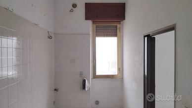 I locali che compongono l'unità abitativa sono attualmente separati dalla scala condominiale con a destra da un vano più cucinino e a sinistra da due vani più servizio.