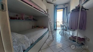 Soggiorno con angolo cottura, camera matrimoniale, cameretta e bagno finestrato.