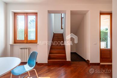o Piano terra: Ingresso su luminoso salone, Cucina abitabile, Servizio, 2 Terrazzi coperti perfetti per pranzi e cene all'aperto, Giardino di pertinenza.