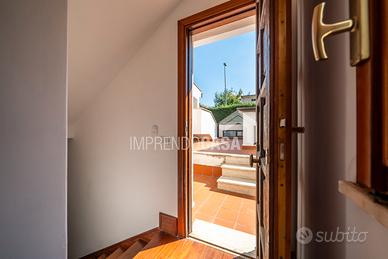 o Piano terra: Ingresso su luminoso salone, Cucina abitabile, Servizio, 2 Terrazzi coperti perfetti per pranzi e cene all'aperto, Giardino di pertinenza.