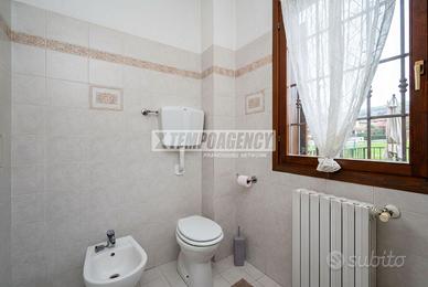 La villa dispone di un giardino privato che circonda l'abitazione, garantendo privacy e tranquillità. Lo spazio esterno è ideale per momenti di relax, attività all'aperto e pranzi o cene in compagnia, immersi in un contesto silenzioso e verde.