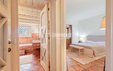 Sullo stesso piano troviamo una camera matrimoniale con cabina armadio e un bagno elegante, completo di vasca e doccia, pensato per offrire il massimo del comfort.