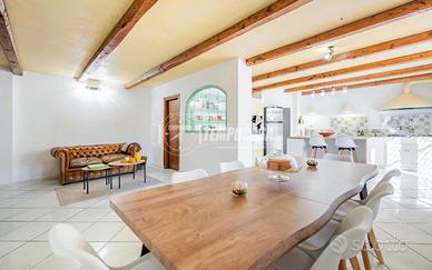 Appena si varca l'ingresso, si viene accolti da un ampio salotto doppio con camino, luminoso e raffinato, che si apre su un bellissimo giardino privato con grande patio, perfetto per vivere momenti di relax o convivialità all'aperto, con la possibilità di realizzare una seconda cucina.