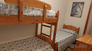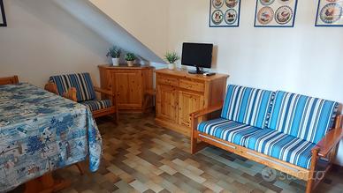 Appartamento composto da: soggiorno, cucinino separato, una camera doppia, una camera a tre letti, bagno finestrato con box doccia, lavatrice, aria condizionata, ripostiglio, posto auto coperto.