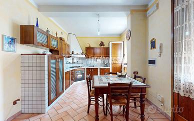 Al primo piano il secondo appartamento a cui accediamo sia da una porta comunicante del piano terra che accede al vano scale, sia da un secondo ingresso completamente indipendente ed è cosi disposto: Disimpegno di ingresso, soggiorno con salotto e zona pranzo, cucina separata comunicante con il soggiorno, due camere da letto (una con bagno privato) e un ampio bagno. A completare l'appartamento una stanza di disimpegno dedicata a dispensa e lavanderia.