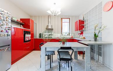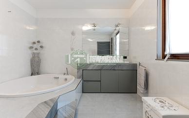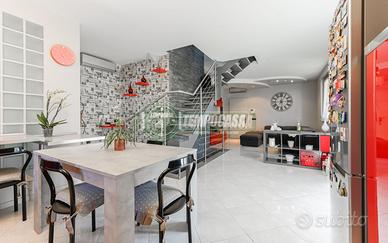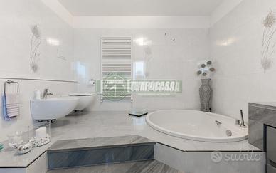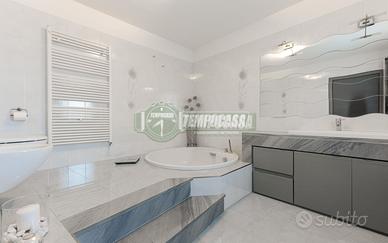 Troviamo invece la camera matrimoniale con un secondo terrazzo, cabina armadio e un terzo bagno all' ultimo piano mansardato.