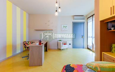 salendo le comode scale possiamo trovare la prima cameretta con accesso diretto all'ampio terrazzo ed il secondo servizio con vasca idromassaggio, entrambe le stanze godono di ottima metratura e una comodissima distribuzione degli spazi.