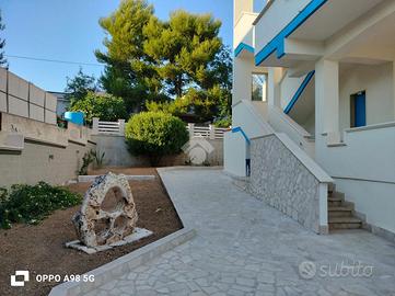 Proponiamo in locazione turistica o brevi periodi, a 300 metri dai lidi attrezzati e dalle spiagge libere, a Pulsano zona Monte d'Arena, appartamento in villa a piano terra rialzato con giardino su quattro lati, completamente ristrutturato composto da due camere da letto con tre posti letto ciascuna, per un totale di sei posti letto, doppio bagno e ampia veranda coperta attrezzata ad uso esclusivo.