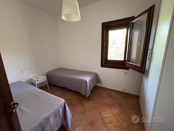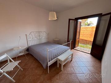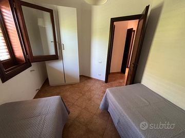 Lo spazio esterno include un giardino ben curato con piante ornamentali e un pergolato, perfetto per pranzi e relax all'aperto. L'interno è composto da una luminosa cucina-soggiorno, una confortevole camera da letto, due funzionali camerette e un bagno con doccia. Possibilità di acquistarla arredata.