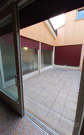 Alla sinistra dell'ingresso si trova la TAVERNA, dotata di porta finestra con accesso diretto al GIARDINO PRIVATO di 150mq, Alla destra dell'ingresso sono presenti un BAGNO di servizio e due locali polifunzionali, attualmente adibiti a studio/salotti, ricavati da ex garage e caratterizzati da ampie vetrate affacciate sul cortile condominiale, che donano grande luminosità agli ambienti.