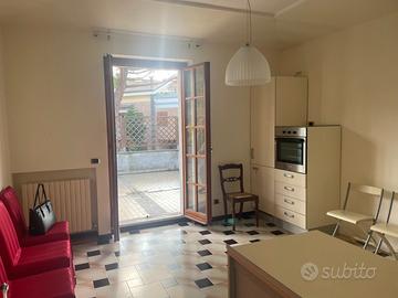 L'IMMOBILE E' POSTO AL PRIMO PIANO CON INGRESSO INDIPENDENTE ED E' COMPOSTO DA INGRESSO SUL PICCOLO SOGGIORNO, CUCINA ABITABILE CON TERRAZZO, 1 CAMERA MATRIMONIALE , SECONDA CAMERA ADIBITA A CABINA ARMADIO/STUDIO CON TERRAZZO, BAGNO FINESTRATO CON DOCCIA/VASCA , NO ANIMALI.