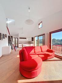Piano Primo: zona living panoramica con vetrate e terrazzo, veranda, lavanderia, 4 camere (3 matrimoniali), 3 bagni e mansarda grezza.
