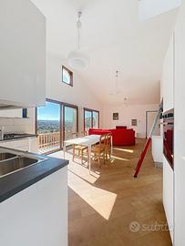 Piano Terra: ampio patio d'ingresso, salone doppio con terrazzo panoramico, cucina abitabile, 2 camere matrimoniali (una con bagno privato) e bagno di servizio.