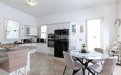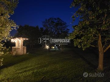 All'esterno vanta un incantevole piscina interrata, uno splendido stagno, due tettoie per un totale di sei posti auto in cui è presente la colonnina per ricaricare la macchina elettrica, uno stabile con tre garage di cui ci sarebbe un'eventuale possibilità di ricavare una taverna di cui accanto si trova un ampio garage. Diverse zone relax per godersi la tranquillità o pranzi/cene nella tettoia in cui troviamo un forno a legna. - Classe: A+ - IPE: 64.74 kWh/mq anno