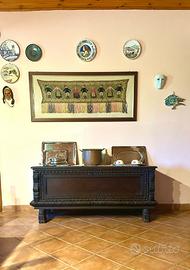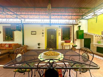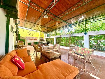 RIBASSO: Accogliente casa indipendente con ampia piscina in località Abba Mala. La proprietà, situata in una tranquilla vallata, fra uliveti, vigneti di malvasia, rigogliosi alberi da frutto, è immersa nel completo silenzio tra i profumi della macchia mediterranea a 3 km dal mare. Ad accoglierci, un ampio soggiorno con camino in stile rustico, con arredi artigianali di pregio in stile sardo che rendono l'ambiente unico nel suo genere. Dal soggiorno si accede alla cucina abitabile, ad un bagno di servizio e ad un comodo disimpegno che conduce alla zona notte, dove sono presenti due camere matrimoniali, di cui una con bagno en suite.