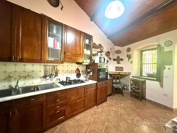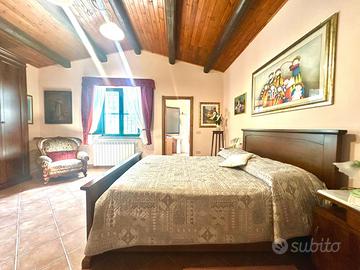All'esterno, un ampio patio dalle generose metrature con forno a legna. Poco distante, la piscina esterna, nella cornice della verdeggiante vallata.