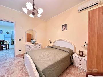 La zona notte è composta da due camere da letto matrimoniali, entrambe spaziose e ben illuminate, con accesso diretto tramite porte finestre a un terrazzino a livello, rifinito con piastrelle, ideale come spazio esterno privato. Completa l'immobile un bagno finestrato, dotato di lavabo, sanitari, box doccia e predisposizione per l'allaccio della lavatrice.