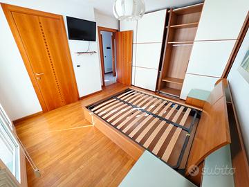 Il disimpegno ci accompagna alla zona notte, che ospita due camere da letto, impreziosite da pavimenti in legno di rovere ed il bagno finestrato; la camera matrimoniale, provvista di bagno privato, gode di un'uscita diretta verso l'esterno, dove troviamo un'utilissima zona lastricata, collegata al giardino di 600 mq piantumato a frutteto ed ottimamente esposto.