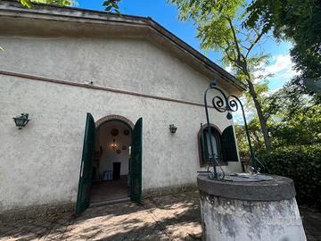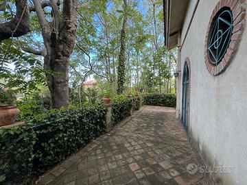 La proprietà è circondata da un rigoglioso giardino di circa 900 mq, ricco di alberi d'alto fusto e angoli di verde ideali per momenti di relax all'aperto. All'ingresso della villa si viene accolti da un caratteristico pozzo in pietra, elemento che dona un tocco di autenticità e richiama l'anima più tradizionale della casa. Un ampio terrazzo perimetrale abbraccia tutta la costruzione, offrendo spazi vivibili in ogni stagione e una perfetta continuità tra interni ed esterni.