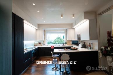 Gli spazi sono pensati per il benessere quotidiano: la zona notte, composta da tre camere e due bagni, è separata con eleganza dalla zona giorno da un salottino intimo e accogliente. La cucina, predisposta per essere separata con pareti in vetro, si apre su un living ampio e luminoso.