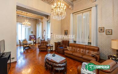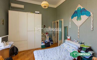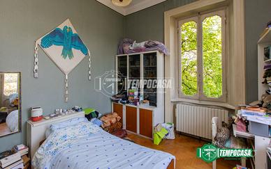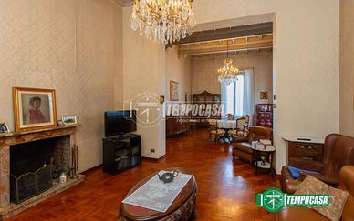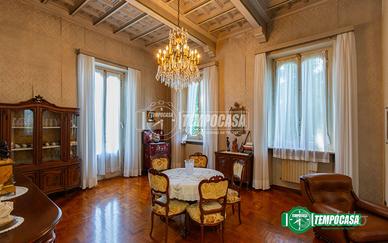 Al piano terra, l'abitazione si apre su atrio che porta all'ampio soggiorno doppio, particolarmente luminoso grazie alle numerose finestre, con soffitti a cassettone, alti e tipici delle costruzioni di fine Ottocento, che donano eleganza e ariosità agli ambienti, dotato di aria condizionata caldo/freddo. La cucina abitabile è separata, spaziosa e perfetta per la vita quotidiana in famiglia. Al piano terra troviamo anche un bagno di servizio.