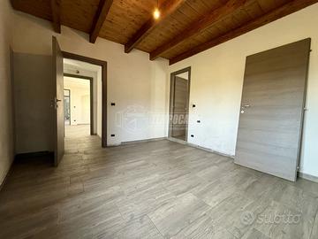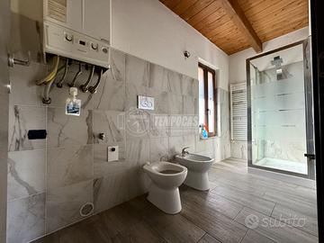 Al piano terra abbiamo sempre l'ingresso sul secondo alloggio bilivello composto da ingresso sul soggiorno, disimpegno, camera da letto, bagno, lavanderia e scala per il primo piano dove abbiamo la seconda camera da letto con bagno.