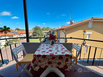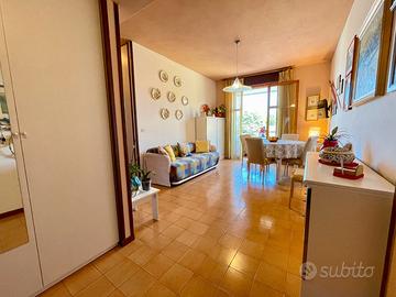 Dalle due terrazze si gode di una piacevole visuale aperta con vista aperta sui tetti e sul verde, che dona luminosità e respiro agli ambienti. L'unità è inoltre dotata di porta blindata, climatizzatore, stufa a gas che rende confortevole l'utilizzo anche in inverno, e di posto auto riservato all'interno della corte condominiale.