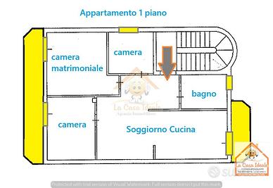 Ingresso, Soggiorno e Cucina con camino, Camera matrimoniale, 2 Camerette e bagno.