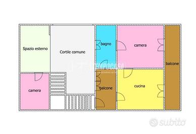 L'immobile dispone di ingresso da cortile comune con rampa di scale indipendente che conduce all'abitazione.