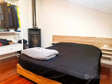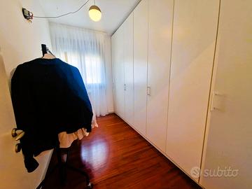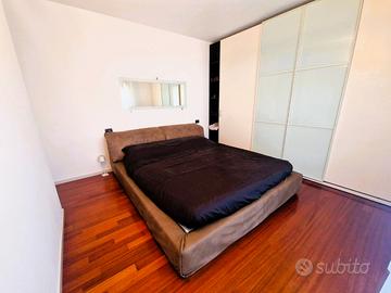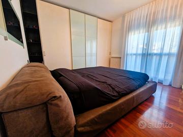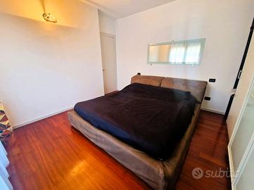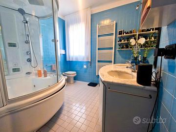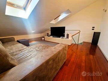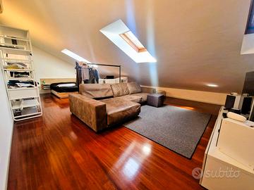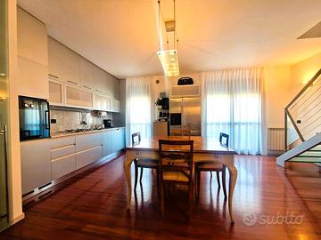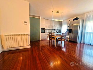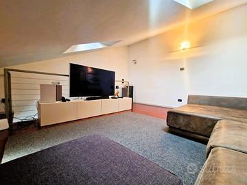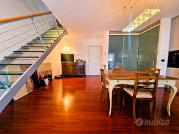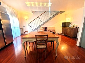 In quartiere comodo ai principali servizi, tranquillo e poco trafficato, proponiamo appartamento distribuito su due livelli al primo ed ultimo piano in contesto condominiale ben curato. Si compone al piano primo d'ingresso di una zona giorno open space servita da ampio poggiolo, con una comoda dispensa/ripostiglio, camera matrimoniale anch'essa con poggiolo, camera singola, bagno finestrato e secondo bagno cieco ad uso lavanderia; salendo le scale in vetro troviamo un ampio spazio adibito a terza camera da letto e salotto relax. L'immobile gode di cappotto termico, riscaldamento con caldaia a condensazione autonoma recentemente sostituita, climatizzazione, zanzariere e tende da sole. Completa la proprietà il garage doppio al piano interrato.