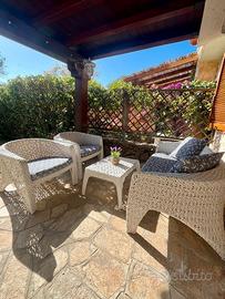 L'appartamento è provvisto di tutti i comfort necessari per una piacevole e rilassante vacanza di coppia: camera matrimoniale, bagno con doccia, zona living - cucina completamente attrezzata, divano letto e un giardino con veranda completa di tavolo e salottino per rilassarsi dopo una giornata di mare. Completano la proprietà un parcheggio privato davanti casa, doccia esterna, lavatrice, lavastoviglie, wi-fi, aria condizionata in tutte le stanze e smart tv.
