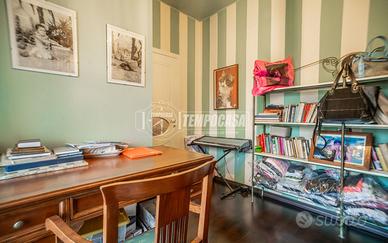 La zona notte, al primo piano, è composta da una camera matrimoniale, una cameretta e uno studio. È presente un secondo bagno finestrato, dotato di vasca idromassaggio. Due balconi servono le camere, donando luce naturale e continuità tra gli spazi interni ed esterni.