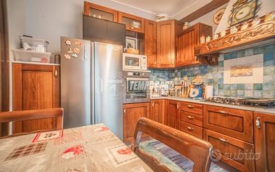 Al piano terra troviamo un ampio e luminoso soggiorno con accesso diretto a uno dei due balconi presenti nella zona giorno. La cucina abitabile, spaziosa e accogliente, dispone anch'essa di un balcone, perfetto per colazioni all'aperto o momenti di relax. Completa il piano un bagno finestrato con box doccia e sanitari a terra.