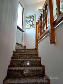 Dall'ingresso si entra direttamente nella zona giorno con cucina a vista. Sulla sinistra ,con comoda scala in muratura, si accede ad una dispensa e proseguendo su per le scale si arriva al piano primo dove troviamo una camera matrimoniale , una grande cameretta entrambe con affaccio sul balcone e un bagno con doccia.