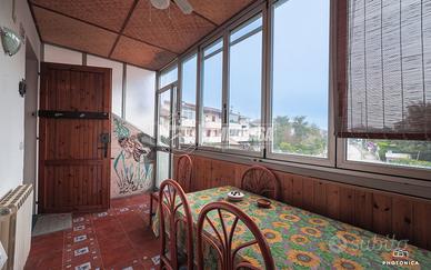 DESCRIZIONE La casa è così composta: PIANO TERRA servito da giardino PRIVATO e GARAGE. PRIMO PIANO composto da ampio terrazzo verandato, soggiorno di 22 MQ, Cucina di 6 MQ, Bagno di servizio sotto scala. SECONDO PIANO troviamo 2 Camere da Letto di cui una matrimoniale e una singola, bagno finestrato con box doccia, e un secondo ampio terrazzo verandato.