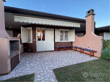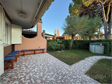 All interno del Villaggio Tivoli, un residence dotato di due piscine e posti auto posizionato nella zona delle Terme, in un area servita da negozi, supermercati e ristoranti, proponiamo un abitazione indipendente a piano terra formata da soggiorno con angolo cottura e una camera da letto che affaccia sul giardino di proprietà.