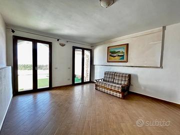 Piano terra: veranda frontale, soggiorno con angolo cottura, bagno completo di doccia, un'altra camera adibibile a camera da letto, veranda con meravigliosa vista panoramica sulla campagna e sul mare circostanti ideale per passare delle serate in compagnia di amici e parenti in un contesto bucolico.