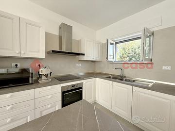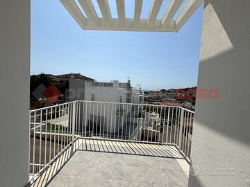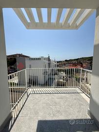 Spazi ben distribuiti e luminosi: La zona giorno, con soggiorno ampio e cucina a vista, si apre su un terrazzo vivibile, ideale per pranzi e cene all'aperto. La zona notte, al piano superiore, offre una camera matrimoniale con cabina armadio e una cameretta con accesso su un ulteriore balcone che garantisce ariosità e luce naturale.