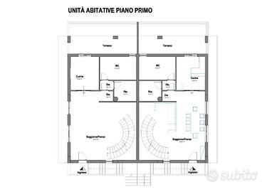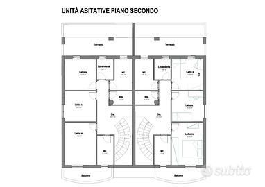 n. 2 situati tra piano primo e secondo di 160 mq con balconi e terrazzo e con spazio esterno di 40 mq.