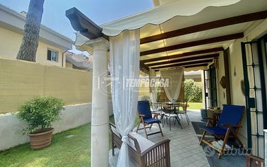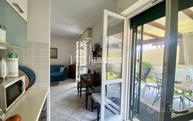 Al piano terra, l'abitazione si compone di un'ampia zona giorno in soluzione living con cucina a vista, bagno di servizio e accesso diretto al giardino di proprietà esclusiva, in parte pavimentato e in parte a verde, completo di porticato coperto, ideale per pranzi all' aperto e momenti di relax.