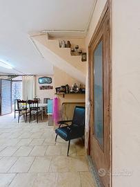 * Piano terra, con accesso anche dal fronte strada: luminosa zona giorno composta da ampia sala con angolo cottura, terrazzo, bagno, studio e grande cortile anteriore;