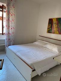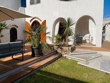 Grazioso appartamento in villa di due piani in AFFITTO a Terracina - Lido di Enea - di circa mq 90. L'unità si trova al piano terra di una graziosa villetta con ingresso indipendente, ristrutturato parzialmente di recente, dotato di un'accogliente portico che affaccia sul giardino di mq 200 circa che la circonda, in parte a prato e in parte lastricato, corredato da salottino esterno e ombrellone per piacevoli serate. L'interno è composto da ampia e confortevole zona giorno con camino, divano, TV. La zona notte è composta da tre camere da letto delle quali una comoda matrimoniale, la seconda con due posti letto (+ un letto estraibile) e la terza con due letti a castello (da quattro posti letto) per un totale di nove posti letto. Due moderni bagni con doccia + utile doccia esterna. Cucina corredata di utensili e dotata di porta finestra, comodo accesso sulla corte retrostante per pranzare all'esterno. La villa dista dal mare circa 100 mt. Descrizione del residence: si trova all'interno del Residence Lido di Enea, uno dei più esclusivi del Litorale Pontino. Composto da circa 350 ville con giardino. La sicurezza è garantita dal Servizio di vigilanza e guardianìa. Dispone di diverse aree verdi per piacevoli passeggiate, con impianti gratuiti per lo sport (come calcio, basket, pattinaggio). Nell'area Giochi i più piccoli trascorrono ore deliziose insieme ai loro genitori e in compagnia dei loro amici. La spiaggia è privata ed è gestita dalla Lega Navale Italiana, che organizza corsi di nuoto, corsi di vela, ecc. Il Lido dispone di un Centro servizi con Bar, Tabacchi, Giornali, Pizzeria, Rosticceria, Tavola Calda.