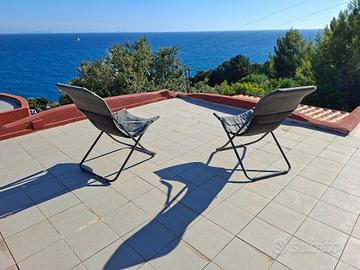 Venite a casa mia. Al Circeo, località esclusiva Quarto Caldo, a 50 metri dietro il faro, con vista sul mare e le isole pontine, 42mq con un solarium di 42mq, un terrazzo di 16mq, un giardino di 1000mq con gazebo coperto e amache. Una stanza da letto, un grande salone con cucina nuova (2025) elettrica a 4 piastre a vista e camino, un bagno con grande doccia, stufa a legna (la legna è gratis in giardino!), 2 split di aria condizionata e pompa di calore (bolletta elettrica a carico vostro), acqua e legna incluse, parcheggio privato semicoperto e non su strada.