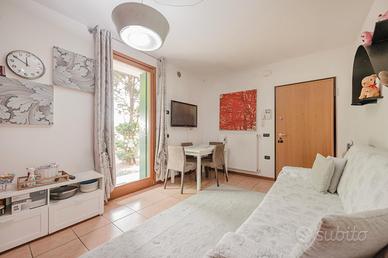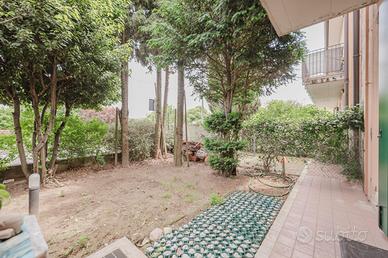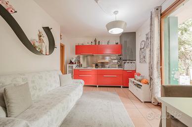 In un tranquillo e curato contesto residenziale, COMODO APPARTAMENTO BILOCALE posto al piano terra con SCOPERTO PRIVATO piantumato. La soluzione, inserita in un caseggiato di poche unità, è composta da una ZONA GIORNO in OPENSPACE CON LA CUCINA, che si affaccia sul RISERVATO GIARDINO. La zona notte è composta da UN'AMPIA CAMERA MATRIMONIALE, servita da un FUNZIONALE BALCONE, e da UN BAGNO COMPLETO E FINESTRATO. L'abitazione è dotata di generosi spazi pertinenziali, come un AMPIO GARAGE, adatto anche ad ospitare una zona attrezzata a magazzino ed UN POSTO AUTO DI PROPRIETA'. Dotata dei giusti spazi, in una zona riservata, questa soluzione risulta essere un'ottima opportunità sia per chi vuole viverla come casa propria, sia in ottica di investimento.