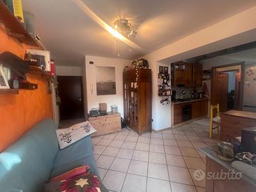 Zona centro storico di Volano, vendiamo in piccola palazzina servita da ascensore, secondo piano con ingresso, ampia zona giorno con angolo cottura, disimpegno, camera da letto, studiolo con velux e bagno. Poggiolo e terrazza abitabile. Buono stato all'interno. Cantina di proprietà e riscaldamento autonomo. C. E. D