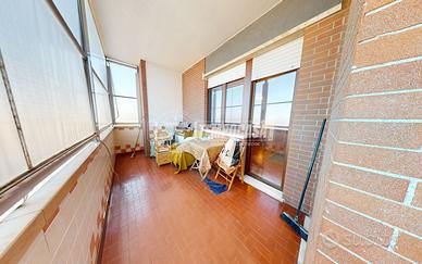 Sito all'ultimo piano di uno stabile con ascensore recentemente riqualificato con bonus 110%, proponiamo in vendita ampio quadrilocale di 110 metri quadrati con vista panoramica. L'alloggio è composto da ingresso tramite porta blindata, ampio soggiorno dotato di finestre e porta finestra che conduce ad uno dei due balconi. Proseguendo, cucina abitabile con accesso al secondo balcone comunicante con una camera da letto, comodo ripostiglio, camera matrimoniale e bagno con box doccia e vasca. Entrambi i balconi sono dotati di tende estive ed invernali.