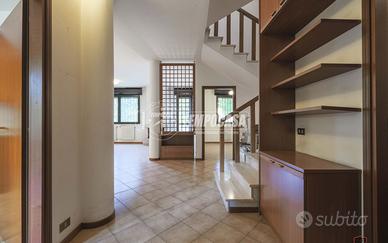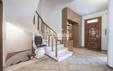 Presentiamo un'immobile di ampie metrature con doppio garage, taverna, cantina, tre balconi, una terrazza e giardino privato.